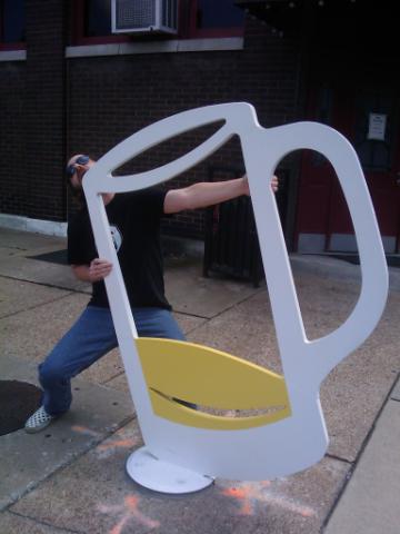 Mike, glugging from sculpture...