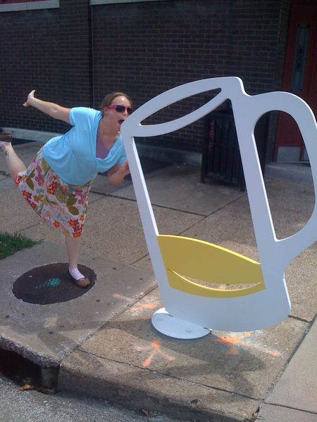 Me, sipping from a sculpture...