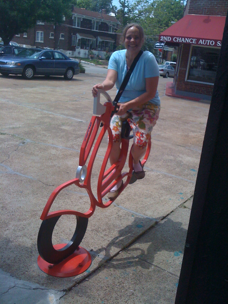 Me, on a scooter! (alas a sculpture)...